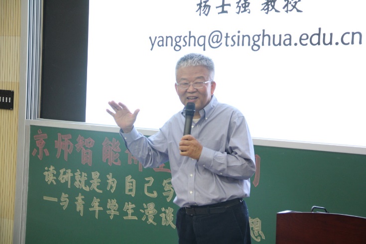 为营造高质量创新与学术氛围,引导大家树立学术思想,京师智能讲堂第五期开展了主题为“读研就是为自己写简历—与青年学生漫谈学术理想”。本次讲座4月10日15:30在电阶梯教室举行,邀请到清华大学深圳国际研究生院信息学部首席教授杨士强担任嘉宾,讲座由学院黄华院长主持。我院本硕博同学积极报名参与,现场气氛活跃,同学受益良多。