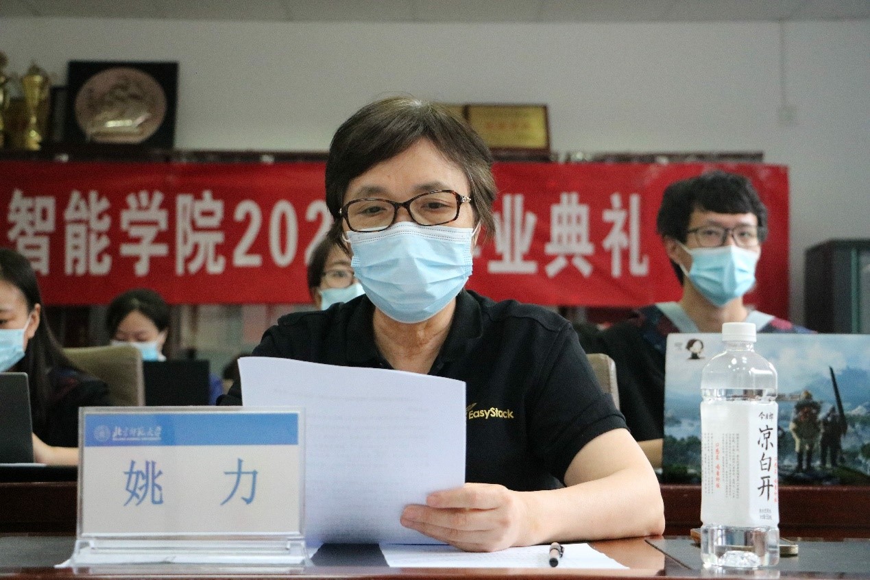 最后,执行院长姚力老师进行毕业致辞。她回顾了2022届毕业生在校期间的表现,对同学们锐意进取、乐于奉献的精神表示肯定,并对毕业生提出三点期望:第一,做一个有理想、有情怀的人;第二,相信“千里之行始于足下”;第三,一定要有规则意识。她表示,希望同学们带着“博学慎思,知行合一”的院训,不负韶华,不负时代,不负人民。