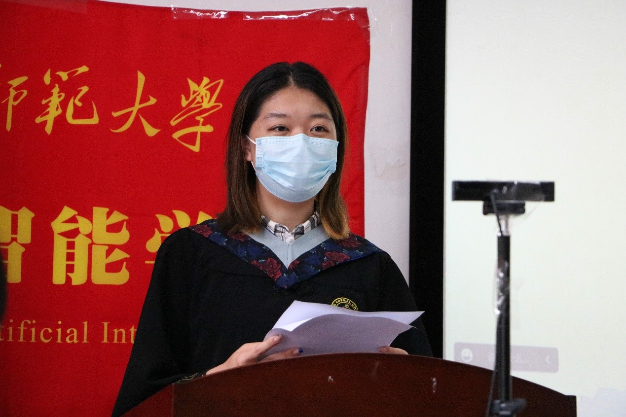 本科毕业生代表贾馥榕、研究生毕业生代表白璐迪同学发言。她们介绍了自己的学习生活经历,也表达了毕业生对学校的留恋与祝福,号召同学们带着“学为人师,行为世范”的校训砥砺前行,为师大百廿校庆献礼。