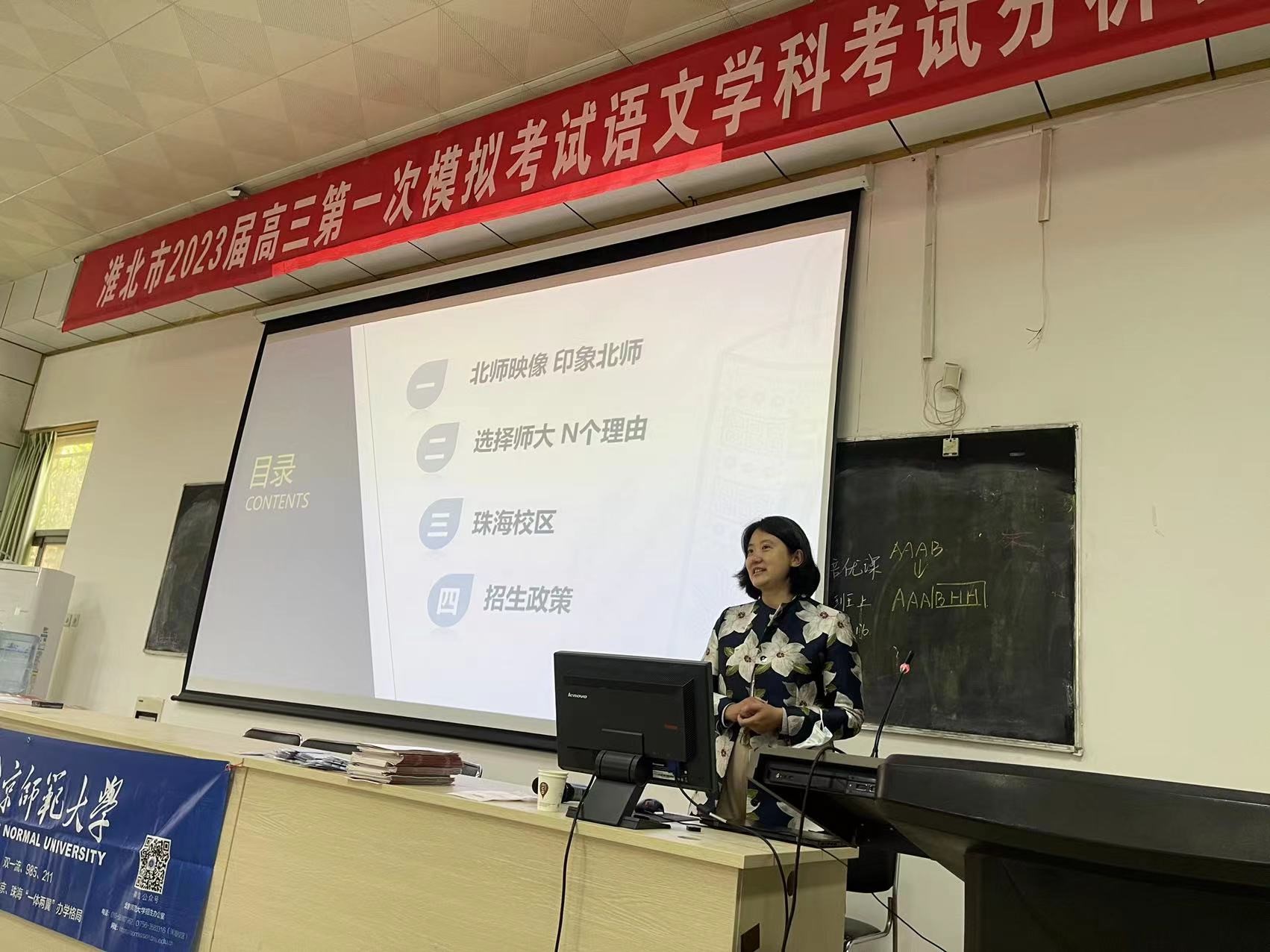 4月27日,学院本科招生宣传工作组的王醒策老师抵达淮北一中,对这所优质生源基地校展开回访联络工作,并与校方代表一同开展座谈宣讲活动。在具体的咨询问答中,王醒策老师重点面向教师、学生和家长,详细解读我校目前实行的招生政策、计划和人才培养举措,促进了该校师生对北师大的进一步了解。