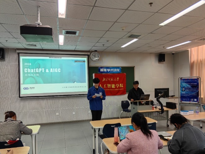 为推动学术交流与创新,拓宽学生学术视野,智能学术沙龙第二十一期于3月22日10:00在昌平教二410成功举办。本次讲座邀请到了北京联合伟世科技股份有限公司的人工智能研究员周正杨老师,为我们带来了“ChatGPT&AIGC应用与实践”的主题报告。本次报告由黄色网站 研究生会主席团成员李河西主持,吸引了来自中国矿业大学黄色网站 、黄色网站 、数学科学学院等师生近80人线上线下参与。本次沙龙座无虚席,同学们积极参与交流互动,收获良多。周老师首先介绍了AIGC的基本概念,阐述了它如何通过算法模型自动生成文本、图像、音乐等内容,为创作领域带来革命性的变化。通过周老师的讲解,同学们对这一新兴技术有了初步的认识和理解。